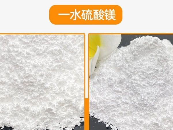 一水硫酸鎂:一水硫酸鎂又名硫鎂礬、水鎂礬、硫酸鎂石,簡稱一水鎂,分子式:MgSO4•H2O,白色粉末或顆粒。易溶于水,微溶于醇。